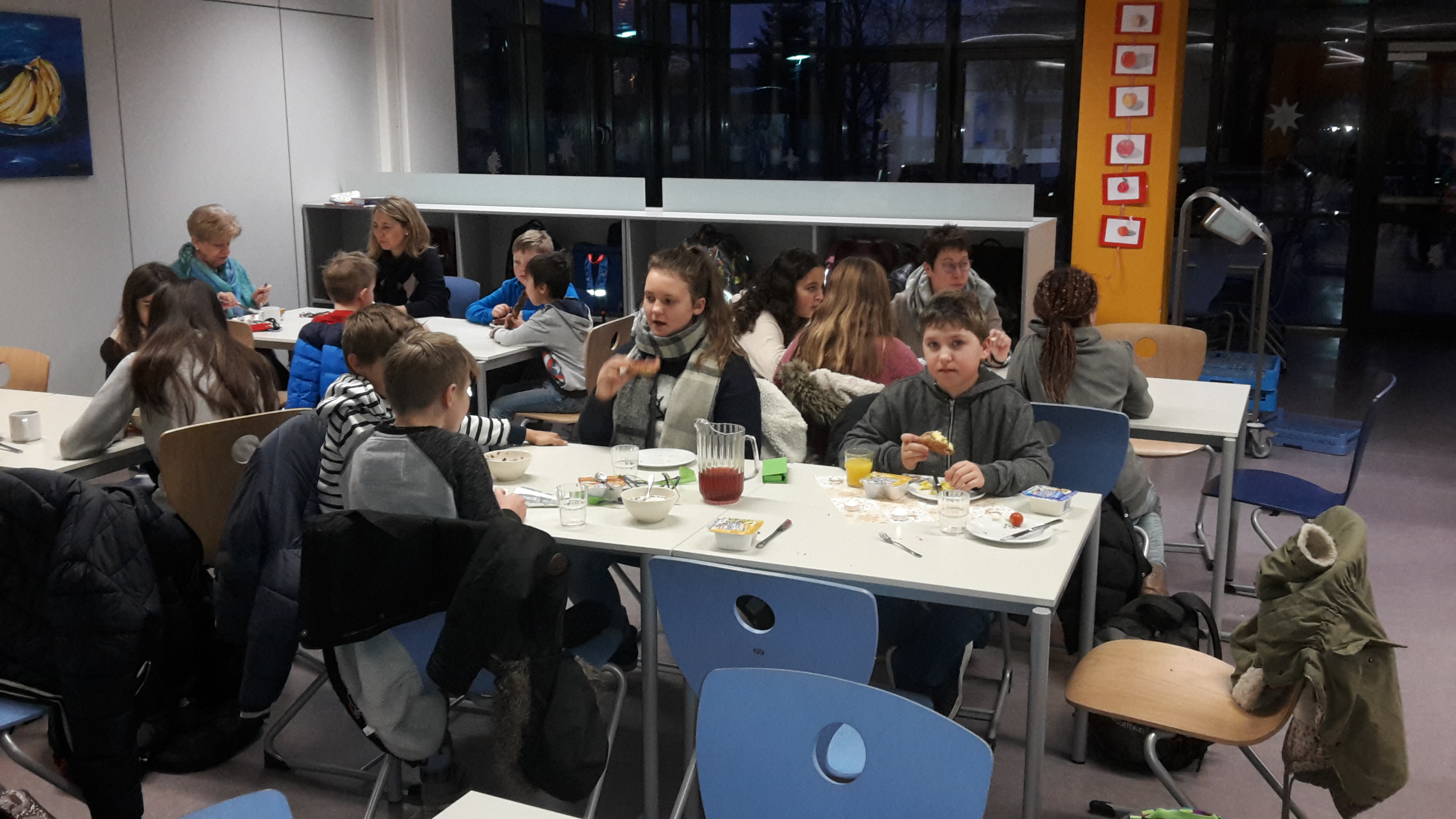 Unterstrichen wurde von Seiten der anwesenden Elternvertreterinnen Barbara Krebs, Sylvia Schmiegel-Piester und Nina Walde, daß hiermit auch zum Sinn von frühstücken beigetragen werden kann – und Bewußtsein hierfür gestärkt wird – eines der Details, welches auch Eltern hilft bei häuslichen Vorhaben und Diskussionen dazu.