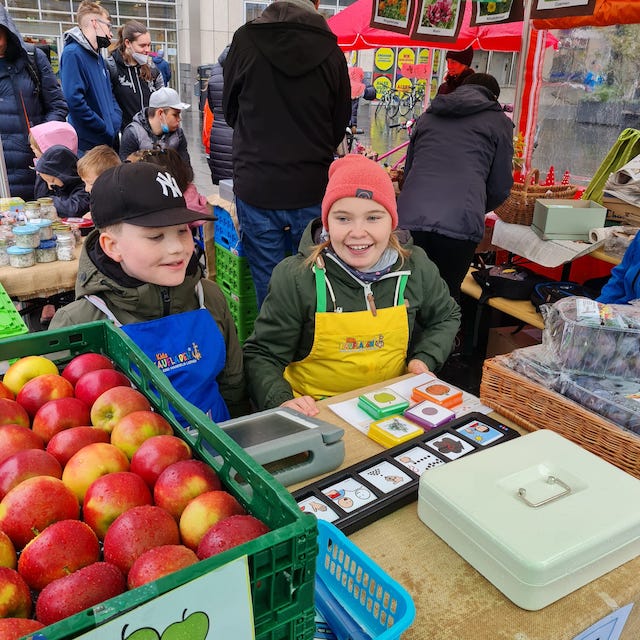 Waren die KITA-Kinder und Erwachsenen beim ersten „kleinen Markttag“ im Juni diesen Jahres in unserer Schule noch zu Gast, haben sie dieses Mal verantwortungsvolle und aktive Aufgaben mit übernommen.