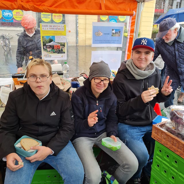 Ein Kraftakt der Tag, doch lohnenswert und ereignisreich für alle – so eindeutig fiel das Urteil aller aus, die diesen besonderen Markttag ermöglicht haben: TeilnehmerInnen der „Schule am Lebensbaum“, KITA Kinder und MitarbeiterInnen aus dem „Traumland“ , sowie dem Projekt Jugend mit Zukunft GmbH und Herrn Wolfgang Gärthe.